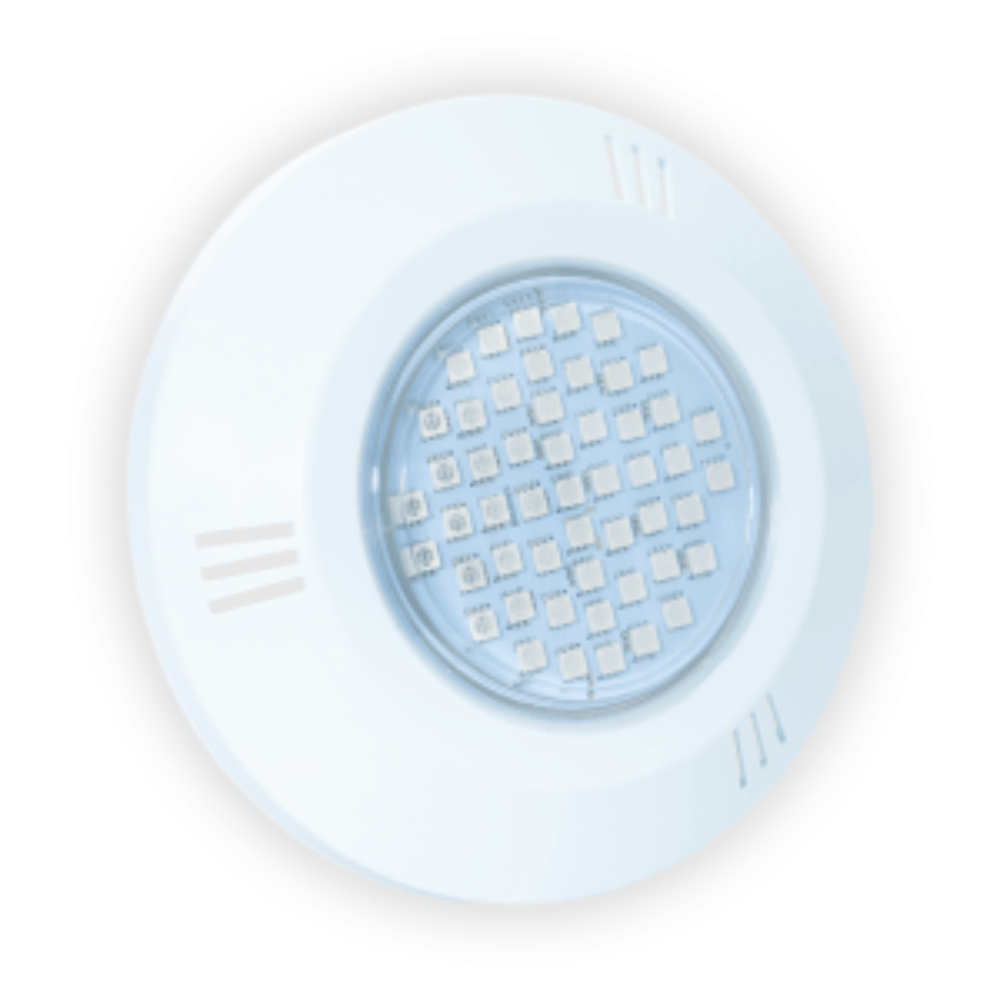 - 51 Lâmpadas: Este refletor possui 51 lâmpadas de LED, proporcionando uma iluminação eficiente e uniforme na piscina.